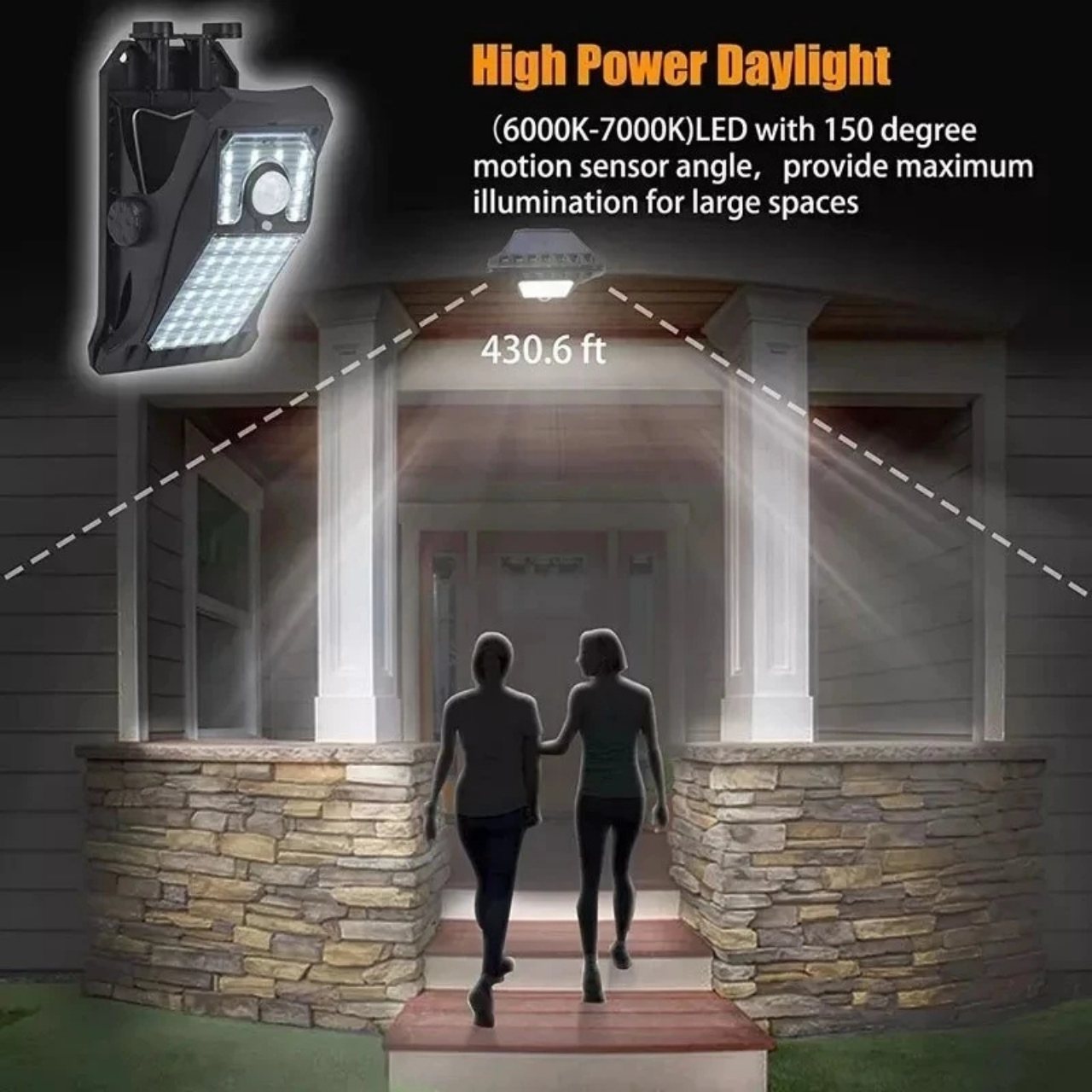 Зарежда се със слънчева енергия през деня (6–8 часа) и светва през нощта, когато се засече движение. Перфектно за външно осветление на градини, тераси, огради, къмпинг, гаражи, пътеки, балкони и други.