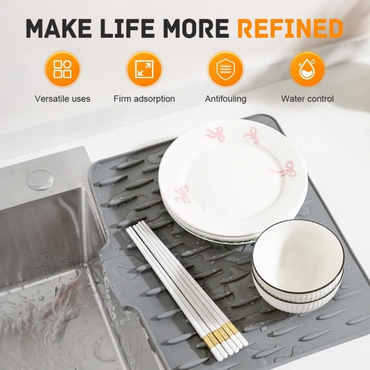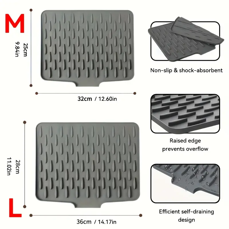 💧 Бързо оттичане – наклонен дизайн 🔥 Топлоустойчива 🧽 Неплъзгаща се повърхност за стабилност ✨ Лесна за почистване под течаща вода 🍴 Подходяща за кухня и баня